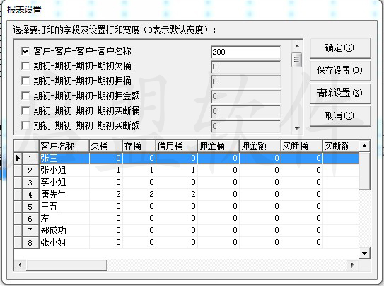 8. 报表可在打印时自己定义要打印的列,以方便实际操作过程中只关注自己想要的数据