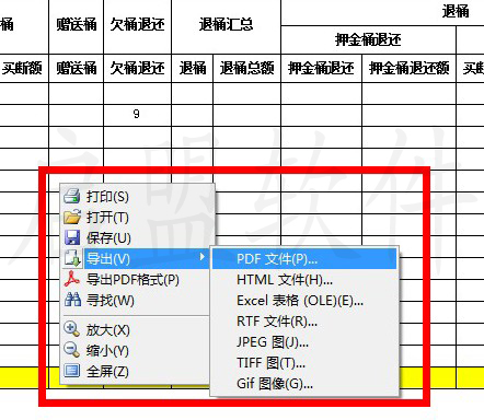 9. 系统管理员可在报表中直接导出各从报表,导出到EXCEL、PDF、HTML等各类格式