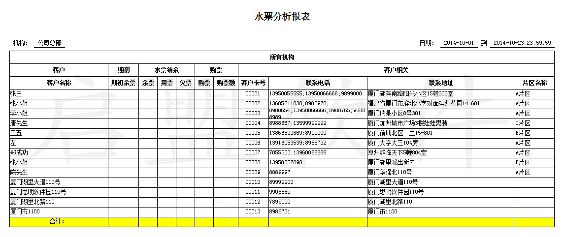 水票分析报表打印
