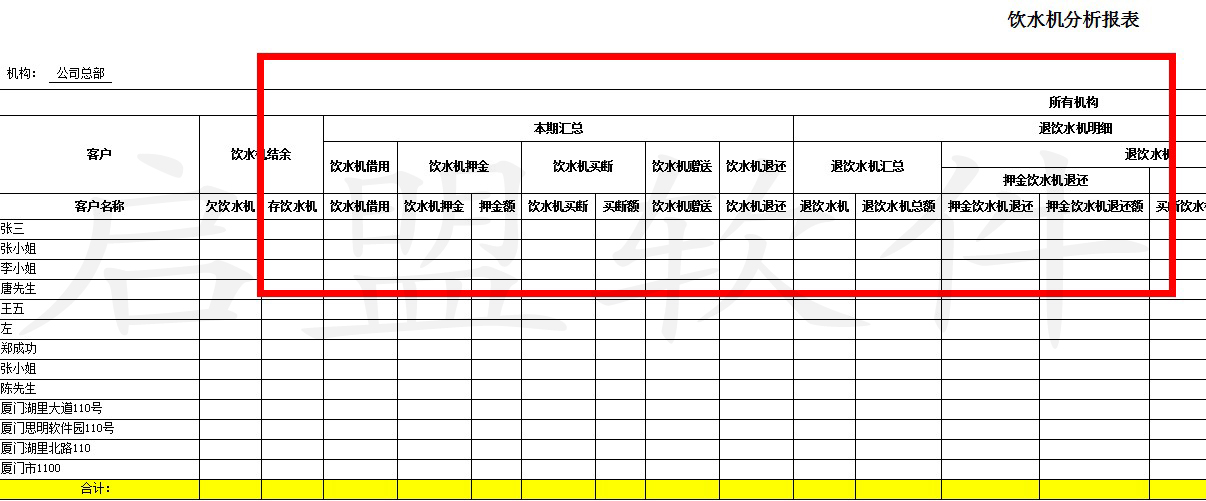 饮水机分析报表